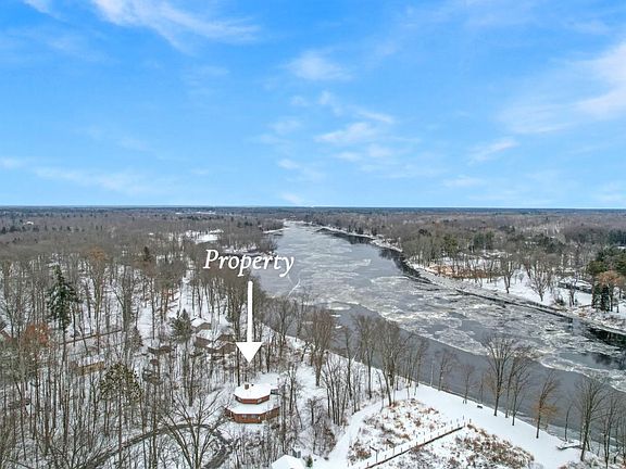 Discover this octagon style 3 bed 2 bath home with 2,400+ sq ft and 100 ft of Menominee River frontage on 1.3+ acres. The entire second floor is a private primary suite with a large walk in closet & full bath. The main level offers 2 bedrooms, a full bath, kitchen, dining area, office, family room & living room with wooded views. Interior has been freshly painted. Features include central air, a Generac whole-home generator, 3 car detached garage, wrap-around driveway, and a large back deck overlooking the river. Enjoy river activities all while being just minutes from town. A rare opportunity to own a distinct riverfront home with space, privacy, and an exceptional setting. LP Tank on property only services the Generac. Natural Gas & Spectrum available at the road.