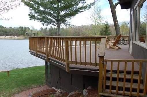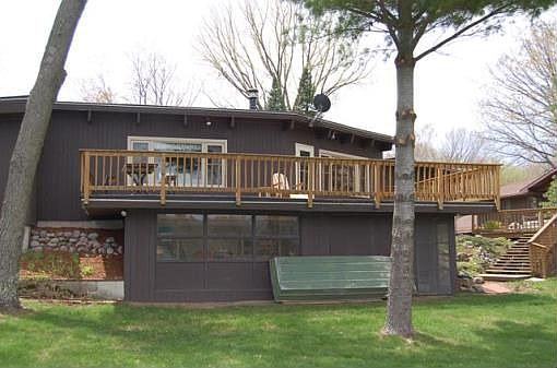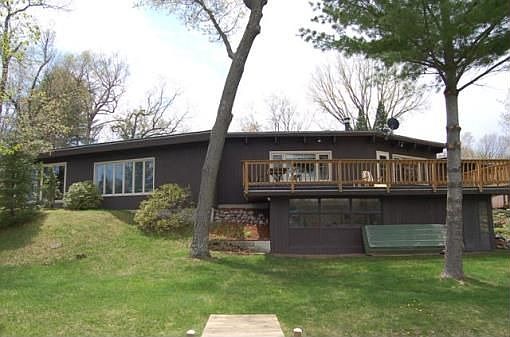 N1446 W Stratton Rd, WaupacaWaterfront home has 157 feet of sandy frontage on full recreational lake in Waupaca County. This year 'round home is on Stratton Lake for sun-up to sundown waterskiing on a clean, clear water lake. Swim, fish, boat, or float on this lake just off Hwy 22 south of Waupaca. The spacious home has much to offer with 3 large bedrooms, living room, family room, 2.5-car garage, screen porch, main floor master BR and laundry, wood stove, and wood burning fireplace. There is plenty of storage including built-in areas plus nooks & crannies. There is plenty of wood trim, detail, angled to give you a Frank Lloyd Wright appeal. There is a tiled garden tub & shower combination in the large master bath. The large windows and glass doors provide plenty of light and great views of the lake or head for the screen room to catch a breeze. The large deck provides plenty of room for dining, entertaining or just relaxing while enjoying the lakefront. Property is nicely landscaped and includes a firepit to roast marshmallows.