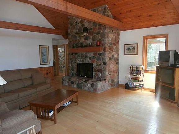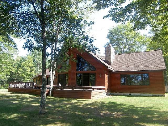 Fantastic private setting on almost 80 acres! Newer log sided home with 3 bedrooms, 2.5 baths, open concept kitchen, living room and dining area with cathedral ceilings, wood beams, wood burning fireplace and a wall of windows overlooking the backyard and Horsehead Lake a 5 acre lake. Large deck, attached 3 stall heated drive thru garage. Hardwood floors throughout, 1st floor laundry, partially unfinished lower level awaits your finishing touch. Come to relax and enjoy the wildlife.