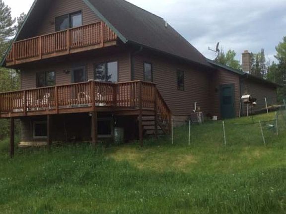 (#462G) Chalet style home is situated on 2.7 acres and includes approximately 700 feet of frontage on the South Fork of the Flambeau River. Wonderful recreational area just a few miles east of town! One bedroom and bath are found on the main floor along with the laundry room, kitchen, dining and living room. The upper level holds the master bedroom suite with closet, full bath and walk-in bathroom closet, and a door to the deck/balcony with a fantastic river view! Full basement, partially finished with family room, LP gas/wood heat, central air, 2 car attached garage and a 2 car detached garage both finished and heated!
