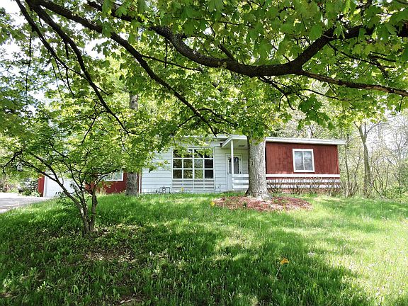 Unique home on a hill features knotty pine wood throughout this 3 bedroom - one bath - built in the 50s- two one acre parcels being sold together - galley kitchen with new appliances, laundry room on main level -one car attached garage- beautiful trees, plenty of space to garden -private setting - must see inside to appreciate layout, wood fireplace in living room