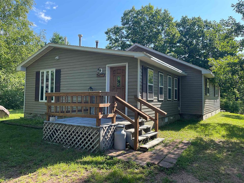 Nearly 7 acres in the country on a wooded lot with mature trees and a pond for a backyard view. 3br, 1 bath with open concept kitchen, living and dining area with a sunporch with spectacular views of the scenic backyard. Main floor laundry. 24x40 garage w/1/2 bath, & 18x20 lean-to. Access to ATV/Snowmobile trails from the property. The property is served by a sand point well and there is a drilled well on the property ready to be hooked up. The drilled well was drilled for the pond, but is no longer hooked to the pond as it is spring fed and sustains itself.