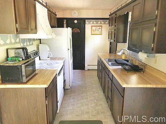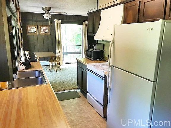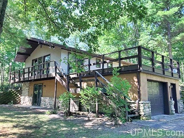 Location is key in real estate, and this place has an excellent location! Nice country 2 BR, 1 bath home on 5+ beautiful acres that borders public land and on a dead-end road. Features LR w/wood fireplace, patio doors, and plenty of closet space. Walk-out basement w/family room w/wood stove, workshop area and laundry. Furnace new in 2011. A scenic setting from the wrap-round deck overlooking the majestic tall oaks and maples in the yard. Has a 16' x 24' 1 car att. garage. On 5.31 acres that borders WI Public Service land to the south. Nestled at the end of a quiet dead end road for seclusion, has ATV route access and less than a mile from the boat landing on the Menominee River.