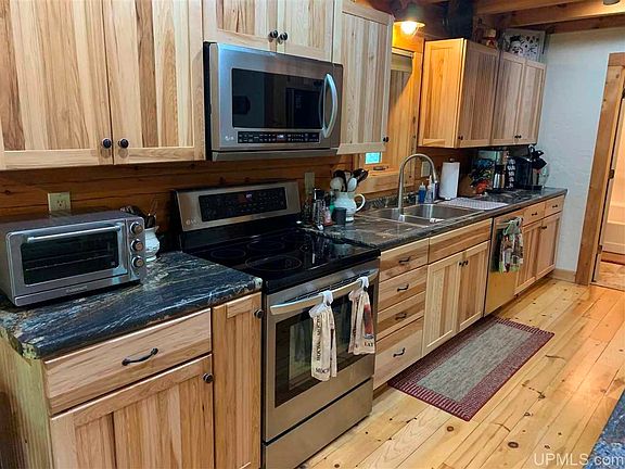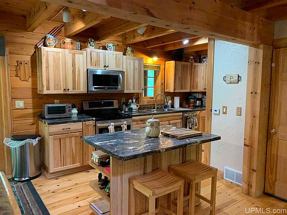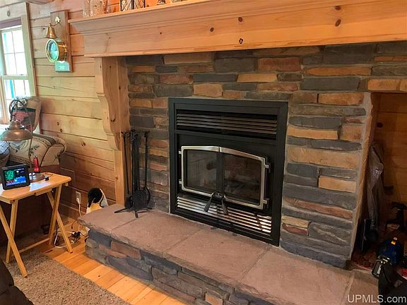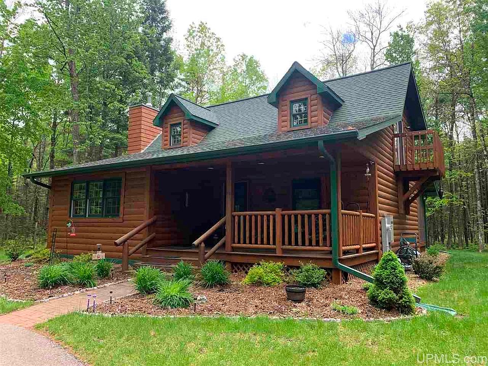 Pvt Deeded Access to the Menominee River, access to the ATV/Snowmobile trail system for WI and MI from property and near 2 golf courses. Immaculately maintained 2br, 2ba log home with covered front porch, back screen porch, full basement, back-up generator and more... The kitchen has been updated with new hickory cabinets, the upper bath has new tile flooring and shower and new cabinetry. Stainless steel kitchen appliances as well as new washer and dryer included. New cast iron wood burning fireplace insert. Paved driveway, nicely landscaped, backyard firepit, and 2 car detached garage.