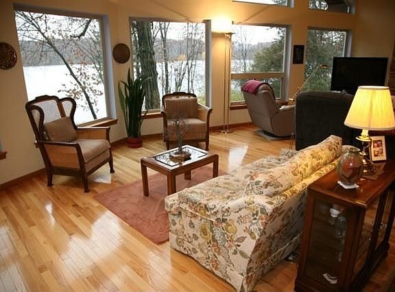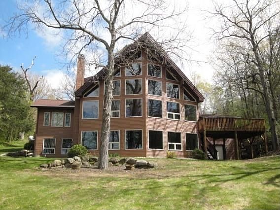 Enjoy a fantastic view from this beautiful home with three levels of glass overlooking Lake Wisconsin. Private, wooded lot with 100 feet of frontage. Wood fireplace with gas starter in Great Room. This very unique home has 3 bedrooms, loft, and large lower level family room. Plumbed for additional bath and windows for 4th bedroom in lower level. In addition to the 2 car attached garage, detached 2 car gafage closer to the lake for storage and hobbies.