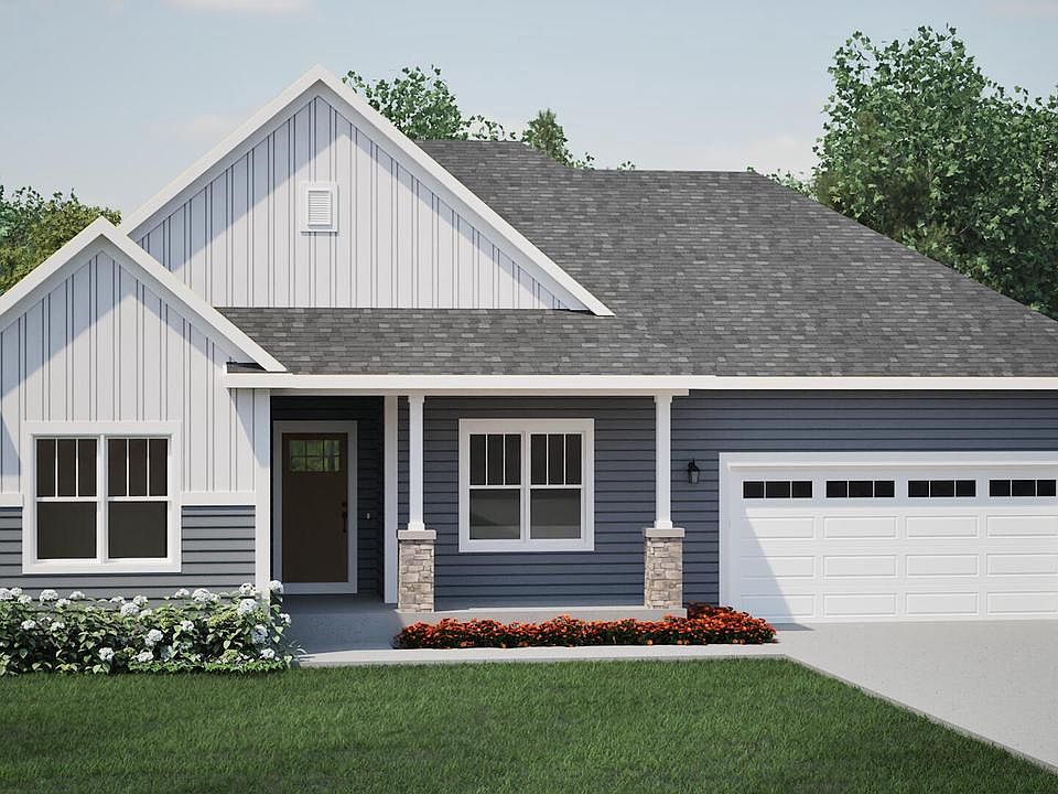 NEW Construction- Ready February 2026! This beautiful Adrian model has all the amenities you are looking for! The Kitchen includes Quartz Countertops, a workspace Island with overhang for seating, and is open to the Great Room which has a Gas Fireplace with Stone to 9' Ceiling detail. The Primary Suite features a Box Tray Ceiling, Walk-In-Closet, Luxury Primary Bath with Tile floors, Tile shower walls, Tile bench in shower and Double Bowl Vanity. Other Highlights include Drop zone and lockers in Rear Foyer, 2.5 Car Tandem Garage, Box Tray Ceiling in Great Rm. and much, much more!