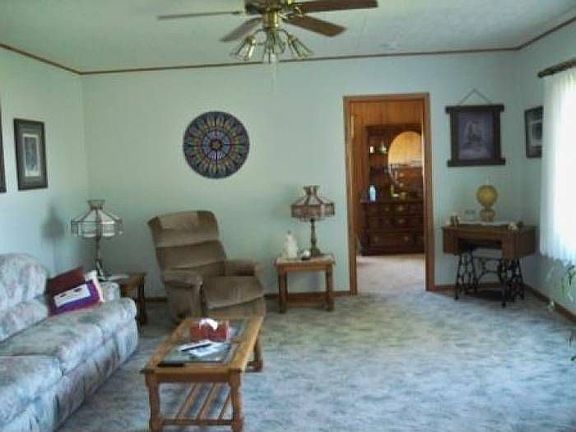 Large house on 2 acres just outside city limits.Newer u-shaped kitchen offers lots of cabniets and very workable floor plan w/ a snack bar and dining room. Expansive Living room and additional family room- plenty of space here for the whole family! Main floor laundry out of the way in a four seasons porch. baths one on each floor and4 bedrooms one of them being 28X16 ft WOW. Furnace,AC windows Well, Water softner are all newer. All this with great country views over looking the the country side and city lights at night.