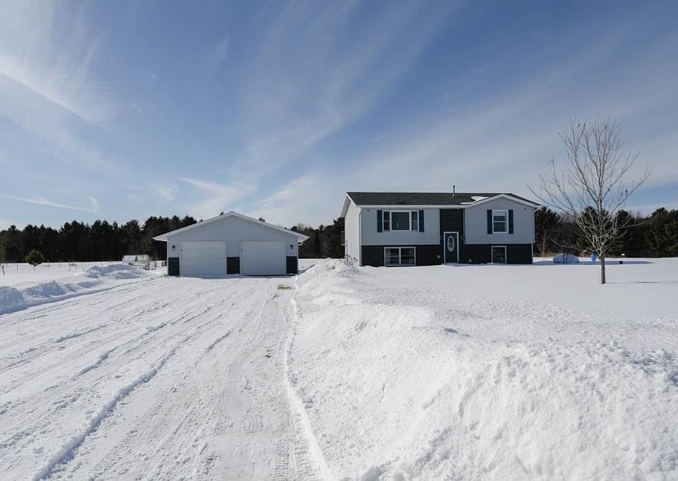 Prime location, just outside of town, seated on 1.17 acres! This 3 bedroom, 2 bath home features 1,854 finished sq ft with a detached 2-car garage, large back deck with huge yard with included play set. Inside features a functional layout with a modern color palette & design accents with tons of natural light (beautiful sunrise from the living room and sunset from the back patio view). Spacious living room, semi-open to the dining / kitchen with accent diving wall. Functional kitchen with a nice breakfast bar, laminate counters, tile backsplash, updated light fixtures and included kitchen appliances! Two nice-sized bedrooms on the main level with a full bath with a knotty pine accent.
