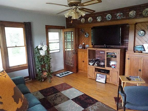 5 bedroom 1 3/4 bath farm house with new 2 car detached garage sitting on 6.42 acres. There are walk in closets in all the upper bedrooms plus has a large landing. Nice covered front porch with mature trees in yard. Nice wide easy staircase to second floor and some hardwood floors. Lately mama and her fawn are seen going through the yard, along with other wildlife.