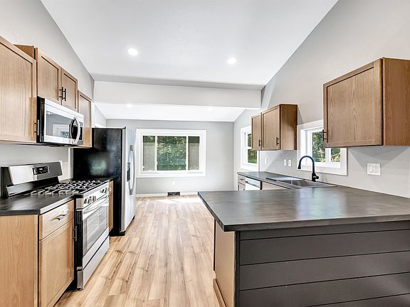 A story unfolds here: four bedrooms and two baths over 1,894 sq ft, freshly modernized with a new roof, gutters, paint, kitchen, and appliances—so move-in ready. Set on nearly 2 acres, this home enjoys about 100 feet of private frontage on Deer Lake, plus a 12-ft easement to Hills Lake—ideal for lakeside living or income potential. A spacious 3-stall attached garage offers room for gear, toys, or extras. Built in 1972, this home combines solid bones with updates, delivering lifestyle flexibility—use it, rent it, or do both. Also includes parcel number 016008540260