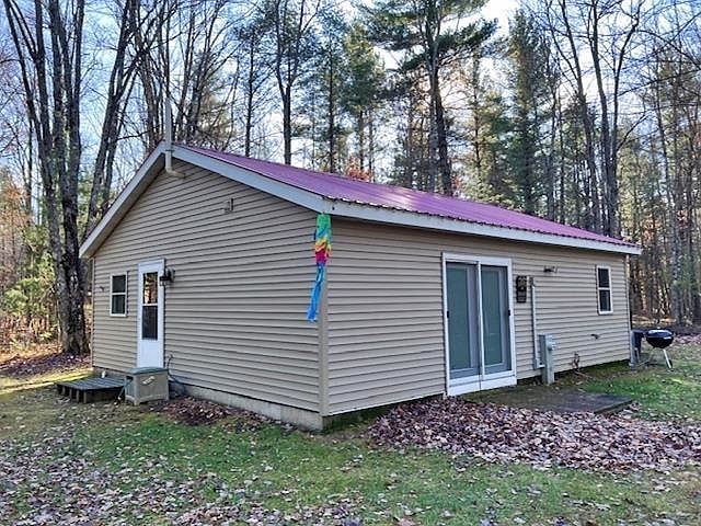 This 2 BR home/cottage offers a cozy retreat with everything you need! Features an open concept KT/LR with beautiful T & G wood throughout and with plank laminate flooring. Patio doors. 1st floor laundry. As an added bonus it is sold mostly furnished. Metal roof and vinyl siding in 2011. Nice 16' x 10' shed built in 2011. Older 10' x 8' shed. A nicely wooded 2.84 acres that offers the outdoor relaxation you've been looking for. Circle driveway. And this is a perfect location for anyone who wants to be directly on the ATV/Snowmobile trails and it is close to small town conveniences. Closing no sooner than April 28, 2025 per seller.