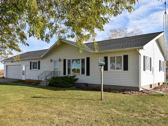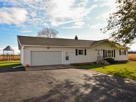 Enjoy peaceful country living in this beautiful 3-bedroom home featuring an open floor plan, hardwood floors, and a large picture window with sweeping views of the countryside. The updated kitchen offers solid surface countertops and modern finishes, opening into a spacious living area that’s perfect for gatherings or entertaining guests. A full finished basement provides plenty of additional living space. Stay comfortable year-round with hot water baseboard heat (fueled by LP gas or wood) and central air conditioning. A stand-alone backup generator ensures you’ll never be without power. Outside, you’ll find 9.9 acres of open land, currently planted in corn—ideal for a hobby farm. The home has a finished 2 car garage, very large pole barn, storage shed, chicken coop & corn crib. WOW!