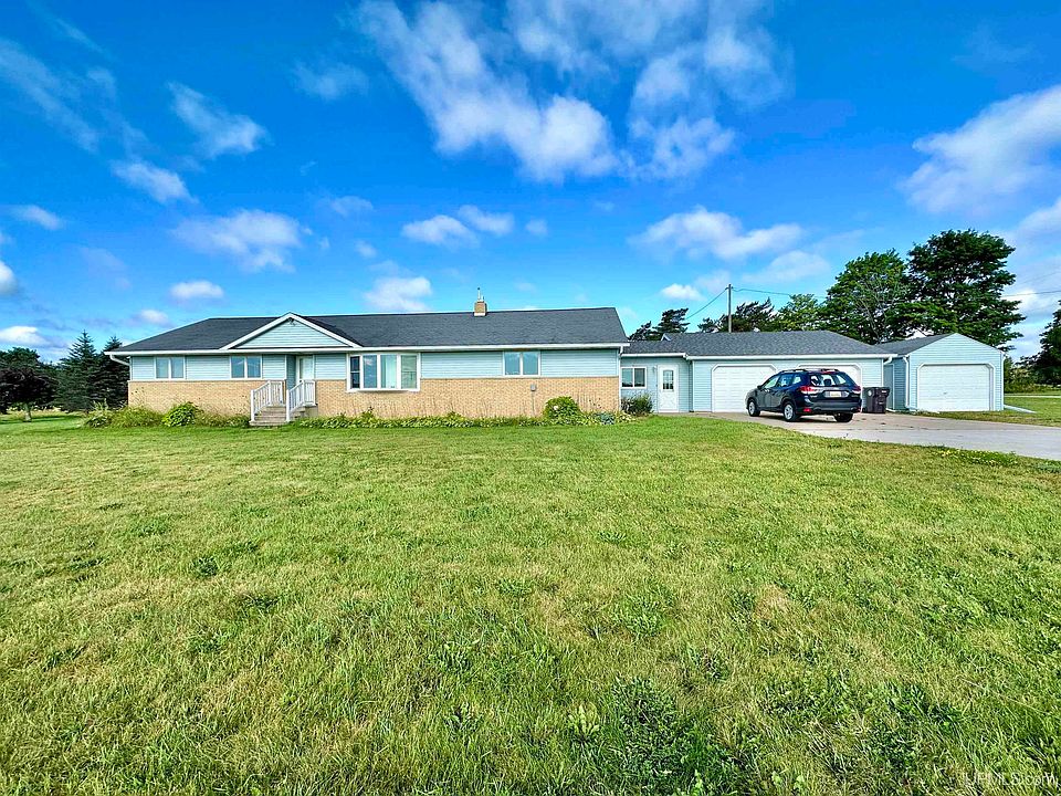 4 Bedroom, 2 Bathroom ranch style home with 2037sq' of above grade living space, plus a full basement. All situated on a square 2 acre parcel of land overlooking fields. There is an attached two stall garage, a detached single stall garage, and also a pole building with water and power run to it in the backyard for added storage. Highline fiber internet is already run to the home. A new forced air furnace with central air, the roof, and all if the windows were just replaced in 2019. A 13 kilowatt Generac generator is present for backup power when needed.