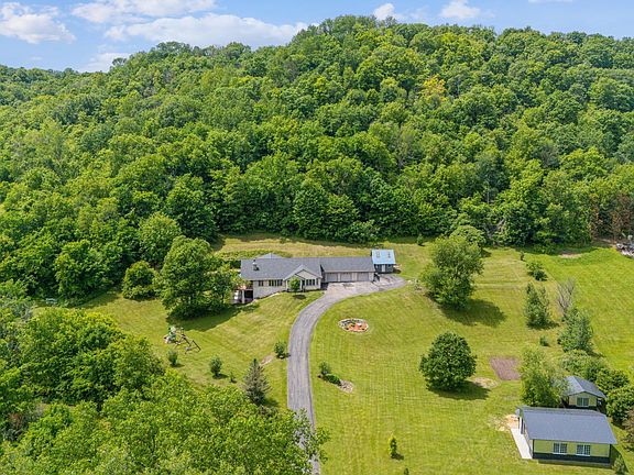 Acreage has a variety of topography: woods, pasture, swimming spots, and your very own farmers orchard spread throughout the property! Cherry trees, blueberry bushes, grape vines, variety of apple, plum, and crab apple trees all for your pleasure.