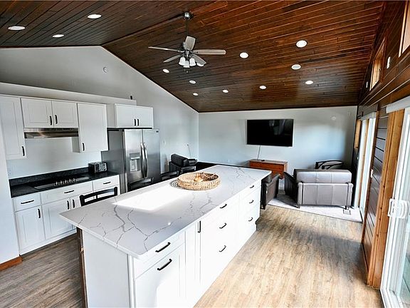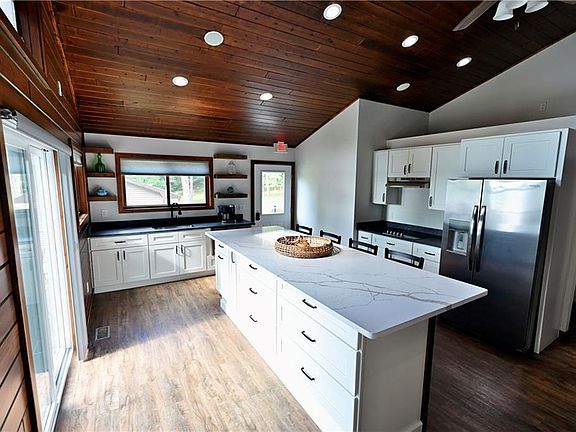 Long Lake! Great opportunity to own this beautifully remodeled property—ideal as a family compound, vacation getaway, or income-producing rental. With two separate living areas, this home features two kitchens, two living rooms, three bedrooms, and two bathrooms, offering both flexibility and privacy. Recent upgrades include custom California closets, new flooring and paint throughout, brand-new kitchen cabinetry topped with granite and quartz counters, and fully updated bathrooms. Step outside to a spacious lakeside deck with stunning views, or take a short, gentle walk to your dock slip and enjoy one of Northwest Wisconsin’s most sought-after lakes. Long Lake spans 3,478 acres and features excellent fishing, over 19 miles of undeveloped shoreline, sandbars, lakeside restaurants, and endless recreational opportunities. Direct access to ATV and snowmobile trails right from your doorstep makes this a true four-season destination.