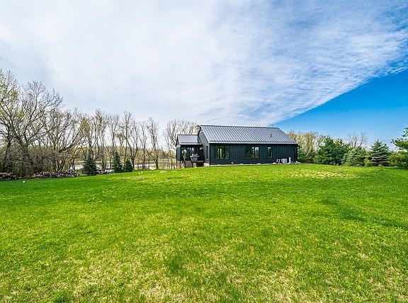 Gorgeous 8 acres, new (2021) 2 BR contemporary home with steel roof(& ice cleats), quality reclaimed mixed oak wood flooring,large main-floor laundry room, LP/stone exterior, Marvin windows, Vermont casting Encore woodburning stove, large stand-up attic for storage has handy ladder on the wall, enclosed screen porch, 38'x30' garage(can park 6 compact cars, 50' wide concrete parking apron outside), 12" deep concrete, FWA furnace/central air conditioner, tankless hot water system, private well (installed by Biersack ),private septic system (by Flitcroft). Excellent location appeal, extremely attractive residential site that yields above-average privacy at building site with magnificent views (peaceful/meditative) of wetlands (pier/water /on wetlands is part of this property). Mother Nature attracts wildlife (deer, sandhill cranes, egrets, many other bird species, & more). Minutes to Lake Geneva. There is a farm access easement on survey for the farmer/owner of property to the north.