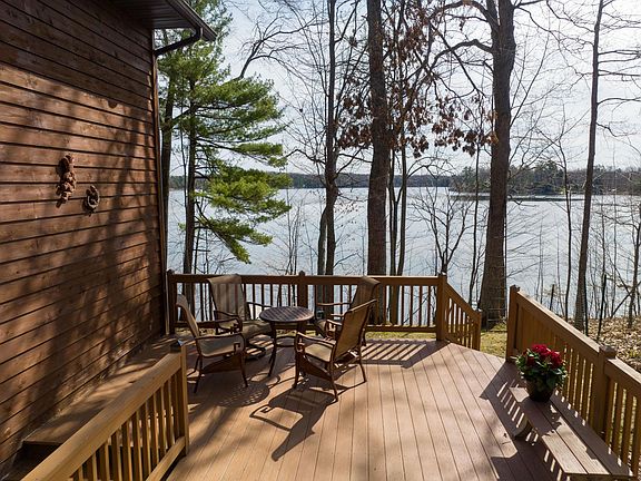 Rare find….2 lots, 1 very nice cabin/home with a total of 325 ft of lower elevation lake frontage on TWO beautiful lakes! Nestled, perfectly to capture panoramic lake views of Ripley lake on a lot boasting 225 ft of frontage, this open concept home is ideal for any wanting to live the peaceful up north dream. This free flowing almost 2,000 sq-ft home offers an amazing kitchen with hickory floors & granite countertops, vaulted ceilings, 2 cozy free standing fireplaces, large living room area & huge master bedroom with Lakeview’s that will take your breath away. Outside one can relax in the warm summer breezes in a screen porch or on two additional decks while enjoying a well manicured yard w/ perennial flowers. Detached garage w/ bonus room offers ample storage. Huge bonus, a separate lot with 100 ft of little Ripley lake frontage is just across the road, optimal for a scenic nature filled evening kayak. Great recreational area w/ access to many ATV trails right from your front door.