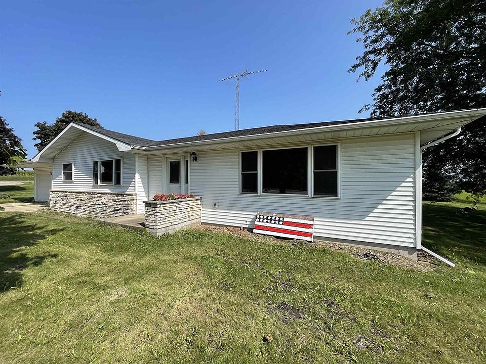 The perfect starter home! This two bedroom, two bathroom ranch style home is a great size, and very manageable. Set on tillable 16.87 acres, this property is great for you to take over on your own or to lease! The house, a huge mud room with laundry and a full bathroom, plus another full bathroom, two bedrooms and a bonus room with patio doors to the deck and backyard, which could be used for a dining room, an office or an additional bedroom if needed. The living room has plenty of space for all of your things with a view from the kitchen so the line of sight is great throughout the entire home.