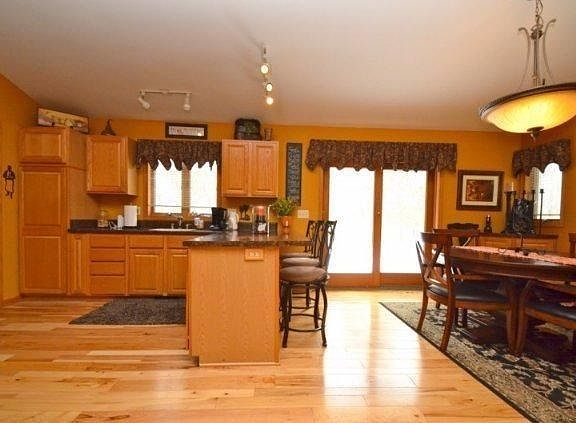 Location, location...a rare find, 4 bedroom, 3 bath ranch with new 24 x 36 dettached garage + 2 car attached garage on private, 1.8 acre wooded lot one block from Lake Wisconsin. Spacious living room with cathedral ceilings, open kitchen/dining area with breakfast bar, family room with fireplace and walkout to yard and adjoining rec room, large master bath with garden tub & separate shower, new roof, enjoy the view from the secluded deck or gazebo...a must see!