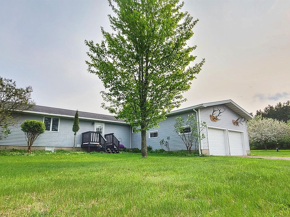 Nestled in 34.93 acres of prime hunting land stands this beautifully maintained 2 bedroom 1 bath home, surrounded by apple trees and a view that will take your breath away! Walking inside you’ll be delighted to see beautiful brand new carpet in the living area and sliding glass doors so you can enjoy your morning coffee on your back deck. This home is the perfect starter home or a fantastic start to add your own touch by adding on more bedrooms and/or renovating, because this location is priceless! Some of the other features of this home include a first floor laundry, walk-in shower and central air to keep you cool in the warm summer months. Downstairs you have an impeccably clean, large, unfinished block basement for lots of storage space or an egress window could be put in for the addition of a bedroom. Brand new radon mitigation system was also put in basement this year. The large attached 2 car garage was updated with new garage doors and new garage pedestrian door this year. On this property you'll see a second large storage building for things like like ATV vehicles/lawn mowers and on the back left side on the lot there is an additional hunting shack in situated perfectly in an area frequented by deer and wildlife!