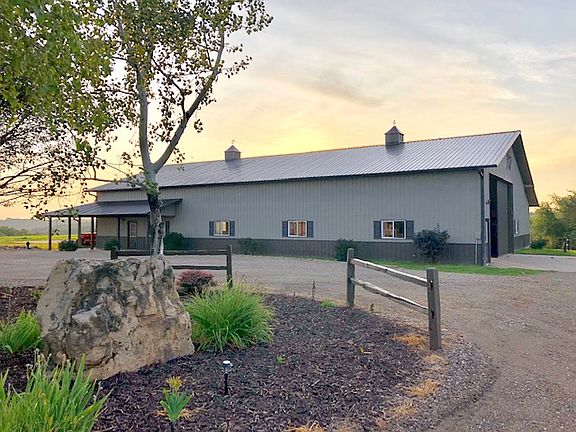 Beautiful ridge top estate with amazing views and only 20 minutes to town! Custom walk out ranch with open floor plan, 9ft ceilings and cherry wood floors harvested from the property. The kitchen has elder cabinets, granite counters and a large pantry. This home was designed for easy living: main floor laundry, master suite with walk in closet and master bath. The lower level also has beautiful views, family room, spacious bedrooms and second laundry. The large deck and outdoor living space is a must see! 3 car attached garage plus 50X90 custom pole building. The land is a perfect balance of open and woods with trails and 3 private cabins.