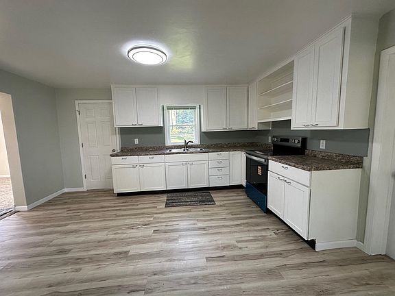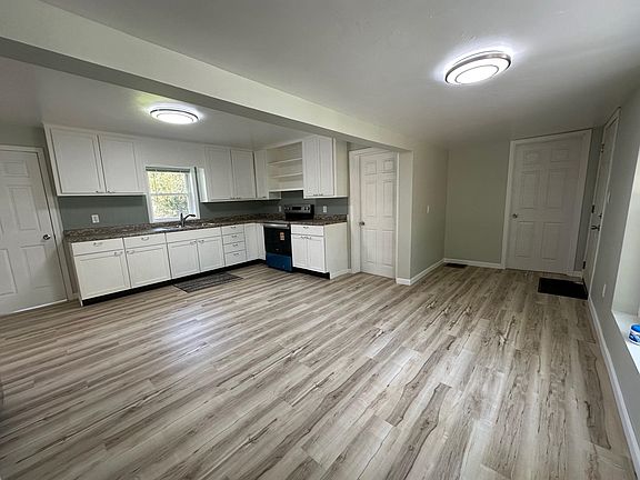 Completely renovated farmhouse on 2.75 acres just minutes from town! This 3 BR 1 BA home has been updated top to bottom with fresh paint, new flooring, light fixtures, a fully remodeled bathroom, and an updated kitchen complete with brand new appliances. The spacious entryway welcomes you with a large coat closet and the eat-in kitchen offers plenty of room for gathering. Bedrooms provide comfortable space and storage with adequate closets. Outside, you'll find a massive 27'x50' detached garage with room for multiple vehicles, hobbies or storage. Enjoy the outdoors with room to roam in this peaceful setting all while staying close to town conveniences. Listing agent is related to seller.