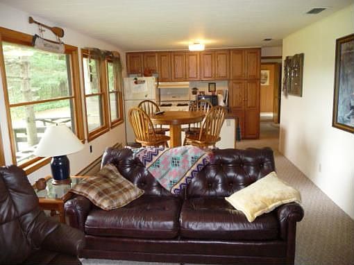 N2280 Cleghorn Rd, Dake Lake, Chain O'LakesComplete Chain O'Lakes lifestyle home is on Dake Lake and list price means you can be on the right lake for the right price for waterfront fun. This well-maintained home offers lakefront views from the open plan living area with wood burning fireplace. The master bedroom is 21 x 14 ft with double windows to enjoy the setting. There is a dining area with access to a deck overlooking the level yard to the water. The setting also offers a wooded area adding extra privacy. Turnkey home has newer heating system for year 'round use. Appliances included along with some furnishings.