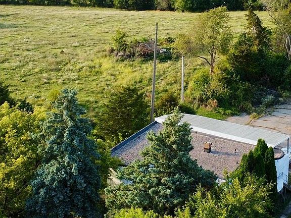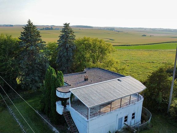 Frank Lloyd Wright inspired building (according to legend) created to look like the front of a cruise ship. Situated on top of a high hill with "A Million Dollar View" of the Baraboo Bluffs. This historic building was created in 1948 as a Radio Station on lower floor and residence on second floor. The full basement has large widows and was previously finished. Many residential and/or commercial possibilities. Needs extensive cosmetic renovation. Or, remove building and create a blank 2.76 acre canvas.