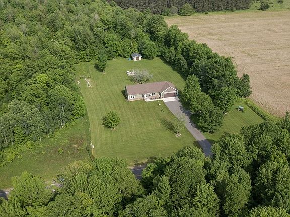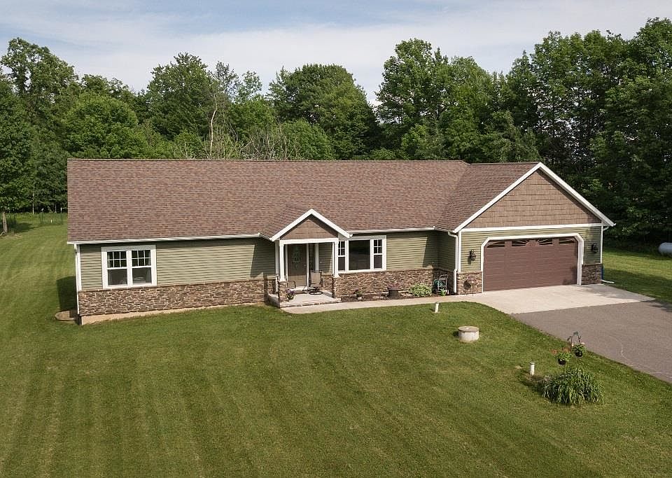 Are you wanting a brand-new home, but do not want to pay for new home construction, look no further! This six-year-old, three-bedroom, three full baths home, is a rare find! Its excellent condition gives it the feel of a brand-new home! The home is located on 2 acres of land with both vacant woods and grass lands surrounding the property, giving you breath-taking views of the countryside. This custom-built home is quality through out with higher-end vinyl siding and stone on the exterior and triple-pane windows, six-panel solid-wood doors and beautiful woodwork and cabinetry.The kitchen features stunning cabinetry, an island, top-end stainless steel appliances to include a Bosh dishwasher and a double oven. Off the kitchen is a first-floor laundry room with built-in cabinets and a mud room. The first floor features an open layout with hardwood flooring in the dining room and high-end carpeting throughout the living room and the 2 bedrooms. The master suite has a walk-in closet with built-in shelving and full bath. The home also features another full bath on the first floor and a deck off the dining room, giving you easy access to the large backyard. The stairway to the lower level features an open stairway with a beautiful wood banister and a spindle rail. The lower level is filled with ample lighting and two large egress windows. The large family has a custom-built bar for entertaining. Near the family room, you will also find a full bath and another bedroom. The lower level also features a large unfinished spaced, which can be used for a workshop or workout room, storage, or a variety of other purposes to meet your needs. The property also features an attached two car garage which is insulated and has all the walls and ceiling painted and dry walled. The garage also has loads of upper storage with a with a drop-down stairway. A third single stall garage is located on the back of the property.