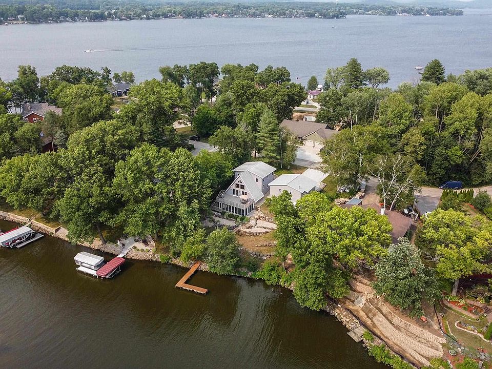 First Time On the Market! Experience stunning lakeside living on Lake Wisconsin with 100 feet of pristine waterfront, situated on the quiet side of the lake. Rustic charm blends seamlessly with modern elegance in this remodeled home. Enjoy breathtaking lake views through a wall of windows. The gourmet KT showcases SS appls & custom cabinetry. Cozy up by the FP & embrace the tranquil ambiance. The ML features a 2nd BR, full BTH, & a walkout to the spacious deck. Upper level hosts the primary suite, offering a sanctuary with stunning lake views, a luxurious ensuite BTH, ample closet space, & a loft area. The Lower Level boasts a grand rec room w/gas FP, bar, 3-season porch w/hot tub, a 3rd BR, & a bonus room. Newly added oversized 3+ Car, 2-story heated garage providing both space & comfort.