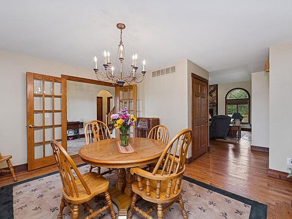 This stunning home built on nearly 20 acres boasts a perfect blend of rustic charm and modern comforts. Featuring 4 spacious bedrooms and 3.5 bathrooms, this property includes a full finished basement with a fun and unique Green Bay Packers theme--ideal for entertaining or relaxing. Hardwood floors run throughout the main level with new kitchen appliances (Dec. 24). Large ceilings and ample living space for the whole family.Step outside and enjoy the beautifully landscaped grounds, complete with flowering trees and vibrant garden beds. A large pole barn sits at the road for all of your toys, tools or workshop and a long driveway leads to a three car, heated garage. The house is eco-friendly, as it is heated by a zoned wood burner off the driveway. This is a house you need to see.