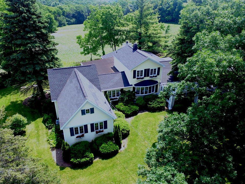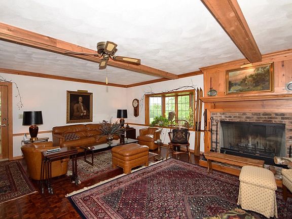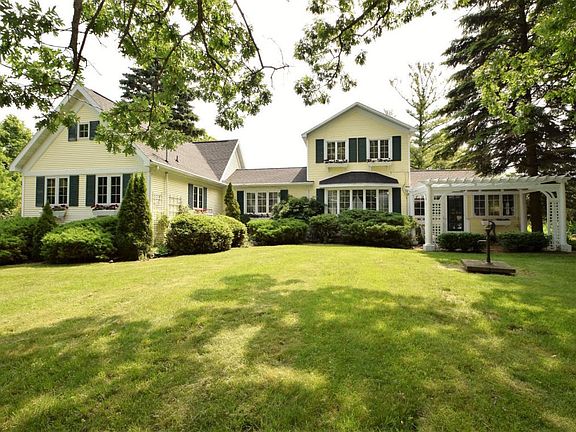 Classic Early American Farm House Retreat on 1+ wooded acres located just a few blocks to Geneva Lake. This stunning home is situated on a hill overlooking mature trees, meandering drive & beautiful stone pillared entrance. Features include kitchen w/stainless steel appliances, living room w/hardwood parquet floor, beamed ceiling & fireplace, spacious master suite w/cherry accents, glassed in front porch, formal dining room, library w/built-ins, bay windows & expansive sunroom/family room w/open countryside views. 2 car garage & 45 X 32 outbuilding.