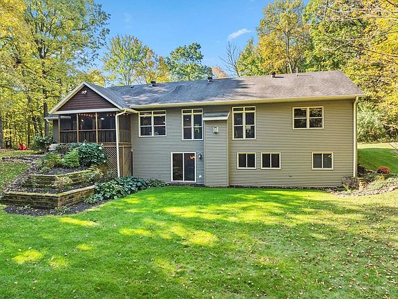 Custom Craftsman home on nearly 40 wooded acres with spring fed creek running through it - ideal for peaceful country living & prime hunting! This quality Steen Construction build highlights gorgeous windows framing views of nature in every season. Main floor features beautiful maple flooring, great room with vaulted tray ceiling & fireplace, the open living area & kitchen flow seamlessly together w/quartz countertops & walk-in pantry. Laundry & primary bedroom w/en suite bath on main level. Lower level walk-out is made for entertaining w/fantastic rec area, 4th bdrm, full bathroom w/tile shower (Geothermal in-floor heat ready). Enjoy peaceful moments on your welcoming front porch, relaxing screen porch, patio, or firepit. Adorable chicken coop! 3 car attached plus 2 car detached garage/shop. You'll love the carpet of wildflowers throughout the woods in the spring! Whether you're seeking the quiet of the country, a hunter?s paradise, or a welcoming quality home, this one has it all!