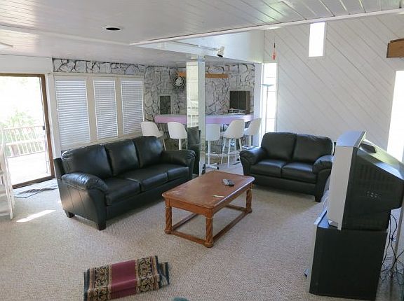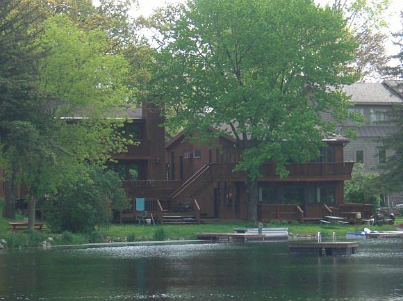 Fantastic Chain of Lakes Rental property. Two houses on one lot with a large 2 car garage. Total of 7 bedrooms and 4 bathrooms. Currently setup as three seperate rental units. This property has great rental history. Large decks over looking the water, hard sand frontage for swimming, sandy beach for kids to play. Two docks and floating dock to enjoy crystal Clear Miner Lake.