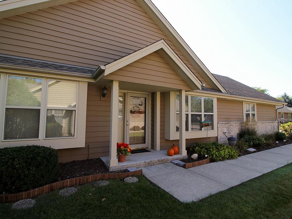 Attractive Side x Side Ranch condo with a private entrance in a great Pewaukee location! Enjoy convenient daily living with an open concept and everything you need on one floor. This bright unit has West facing windows in the GR & dining areas. Relax in the GR with a vaulted ceiling and cozy gas fireplace. Newer Patio doors in GR lead to a nice sized patio area. The large kitchen with dinette has loads of cabinets, plenty of counter space and a handy planning desk. Convenient in-unit laundry room. Large primary bedroom suite with full bath, vaulted ceiling and walk-in-closet. Second bedroom is right next to a full bath with Walk-in shower stall. Newer windows were put in the unit. Large attached 2.5+ car GA with No-step entry & room for storage. Don't miss, Set-up your showing today.
