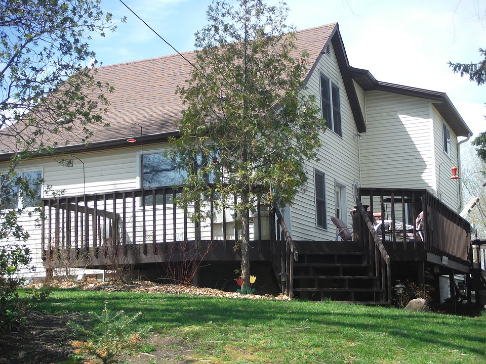 Large river front remodeled home 6 miles south of Menomonie on the edge of Downsville. Home has a 2 car garage w/220 power, 4 bedroom, master bedroom with bathroom, office, 2 kitchens, 2 full bathrooms, & full unfinished basement with walkout. Beautiful lot with large deck, fire pit, huge established garden w/asparagus, raspberry, & strawberry patch, large playcenter for kids, beautifully landscaped yard with many flower bed with perennials, established apple, plum, cherry tree, shed with electric and has a chicken coop. Property is on city water & sewer. Access to river from property. 2 blocks to bike trail & 1 block for boat access. Must see to appreciate!