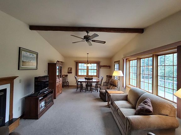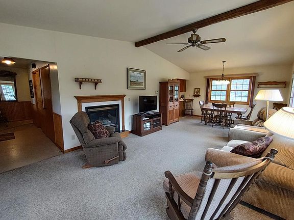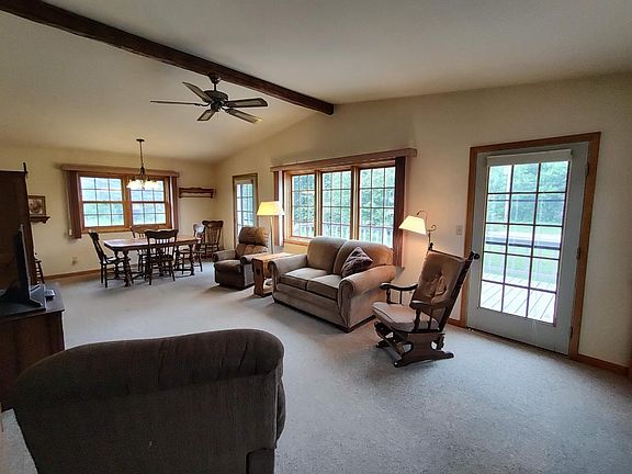 COUNTRY LIVING, CLOSE TO TOWN AND EASY ACCESS TO HWY 51 FOR COMMUTING. Ranch home with steel roof built in 1990 offers plenty of natural daylight in the living/dining area with gas fireplace and doors leading to the 12x24 deck on the east side of the home. Galley kitchen offers plenty of cabinetry and counter space, all appliances included, with main floor laundry located just off the kitchen and hallway leading to the two large bedrooms, full bath and half bath. Full basement offers a partial finished rec room with T&G walls, drop ceiling plus a wood stove for added heat. Just add flooring to finish the room to your taste. There is also plenty of unfinished area to complete as desired or use as storage. The side covered entry leads to the detached 22x30 garage with steel roof and blacktop drive. The property has little traffic as located on a dead-end road and has 3 acres that the owner allows the neighbor to fence for the horses to keep it "mowed". Lennox furnace replaced 2019.