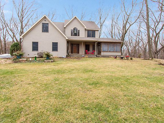 Private Country Estate! Nestled on 5 wooded acres w/gated entrance sits this 5BR/3.5BA home located close to town & lake. Features include open concept kitchen w/cherry cabinets, granite & breakfast bar open to large dining area w/sliding door to deck, Brazilian Cherry HW throughout main, 3 levels of in-floor heating, living rm w/stone FP, den/office & fabulous cedar screened in sunroom. The mstr suite offers large walk-in shower & attached bonus room which can be used as a dream dressing rm or office space. The walkout lower offers spacious family rm & game rm areas w/stone FP, sauna, bed & full bath. Entertain on the deck, covered front porch, sunroom or backyard patio w/built-in firepit. BONUS 48x42ft pole barn w/lean-to for horses or perfect for all of your toys!