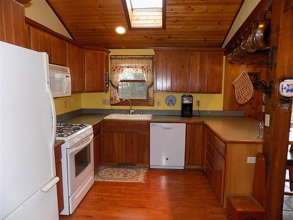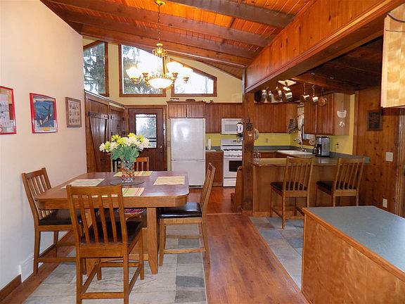 2.6 acre lot with single story main house with 2 bedrooms 2 full baths (master with whirlpool tub). Open living concept with two sky lights and loads of kitchen storage space. Four exposed parking spaces. Front deck is wired for hot tub and outdoor lights. Separate Auxiliary Dwelling Unit (ADU)/guesthouse/cabin (approx. 600+ sq ft) with tankless water heater, open concept with kitchen, full bath w/shower and separate deck over a two car garage with single garage door and a regular walk-in door. Garage is currently set up as a working shop. Separate room in garage for well pump, tankless water heater, and storage. Tool shed/garden shed stands alone on property. On lower end of property there is another two car garage with mezzanine deck over back half of both parking slots. An 8'X16' greenhouse with floor drain and electricity is located on the south side of lower garage. Detached two car garage and garden shed are both metal siding and roofs.