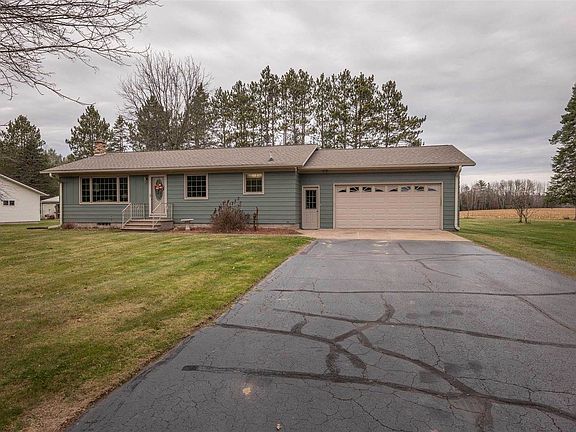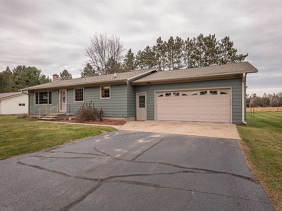 Welcome home! This nicely updated 3 bedroom ranch sitting on a nicely sized lot over half an acre offers comfortable outskirts living while still being close to the amenities. Don’t forget about TONS of garage space. Less than 10 minutes away from the City of Merrill and close to Alexander Lake, this welcoming home features fresh flooring throughout the kitchen, dining room, hallway, and bathroom with a nice vanity and plenty of cabinet space. The kitchen features updated cabinet hardware and vinyl countertops and includes the refrigerator, range and microwave. The living room windows invite lots of natural light during the day. The downstairs is ready for your final touches to add a ton of finished living space! Central air unit for the hot days and in the cold,forced air heat with an additional wood furnace system. Refrigerator, washer and dryer in the basement are included as well, please take note; the downstairs cabinets are NOT included and will be removed prior to closing. The two car attached garage offers convenience but it does not end there! 3+ car additional detached garage with an insulated and heated bay on the left will hold all ofyour toys, cars and projects. 1 car detached garage/she shed in the backyard.  This information is compiled from miscellaneous sources and is believed accurate but not the listing broker nor its agents or property owner are responsible for the accuracy of the information. Buyers are advised to verify all information.
