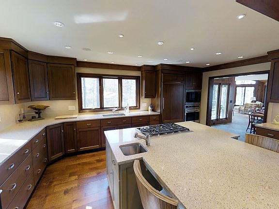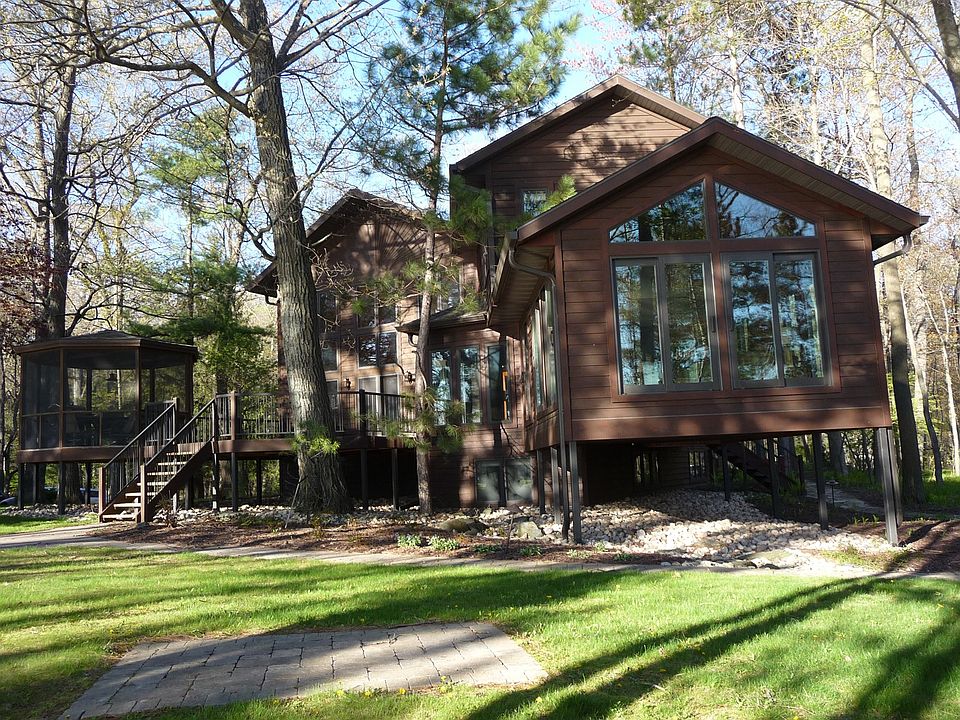 Ultimate lakeside relaxation awaits in this beautiful Chain O' Lakes home. From the moment you enter this 5 bedroom, 6 bath home, you will be impressed with the fine detail and high quality finishes. Sitting along 90 feet of sand frontage on Round lake, this is the perfect Chain O' Lakes location to catch the sunset with family and friends. The 2 story great room creates a bright, airy, open living space and boasts a beautiful stone fireplace, built in quality wood cabinets and shelving, and a wall of windows to the lake. The gourmet kitchen has built in Wolf appliances, 2 dishwashers, double ovens, walk-in pantry, Quartz countertops and a huge island for casual kitchen seating. Right off the kitchen is the formal dining room that opens to the sun room with custom Oak walls and Radiant in-floor heating. The expansive deck allows for the perfect outdoor entertainment area with a screened in gazebo. The main floor also has a comfortable sitting room that could be used as a den or office, in addition to a full bathroom with jet tub, and wonderful master bedroom featuring a bay window, huge closet with built-in organizational shelving, and large master bathroom with custom walk-in tile showers. The upper level has 3 additional bedrooms each with an ensuite full bathroom all with walk-in tile showers and great closet space. The lower level has a large family room area with stone fireplace, an additional bedroom, full bathroom, laundry room, and great storage space. In addition you will find beautiful hardwood floors throughout, a side deck, and an attached 2 car garage. Call Joe Udoni to set up a showing of this Round lake home today at 715-281-8807.