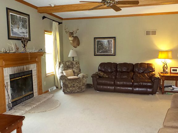 Spacious sun filled Ranch home. Living room with natural fireplace, Kitchen has great cabinet space and snack counter, Dining room with patio doors. 3 nice sized bedrooms, master suite has whirlpool tub. Finished LL with rec room, tv area with cabinets and mini fridge, bonus room, workshop and storage area. Great yard space, fruit trees, stamped patio, fire pit and shed. Attached 2.5 car garage and front porch to enjoy the view.