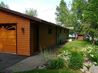 Serene LAKE FRONTAGE on Spring-fed Lake Pesobic, excellent fishing, swimming, boating, relaxing and wildlife! Limestone High Efficiency Fireplace in Living room, great place to sit and enjoy sunsets. Updated kitchen with beautiful maple Cabinets. Kitchen has pass through to Living Room, very open feeling with large windows looking out over the water. A warm space to enjoy the great view. 2 car attached garage, 1+ car insulated detached garage with carport, and a boat house!
