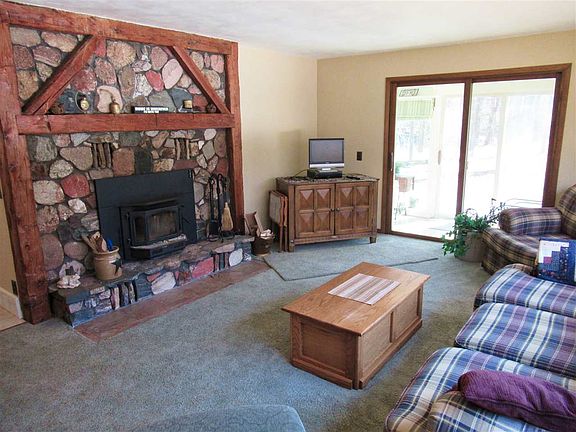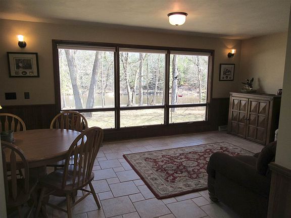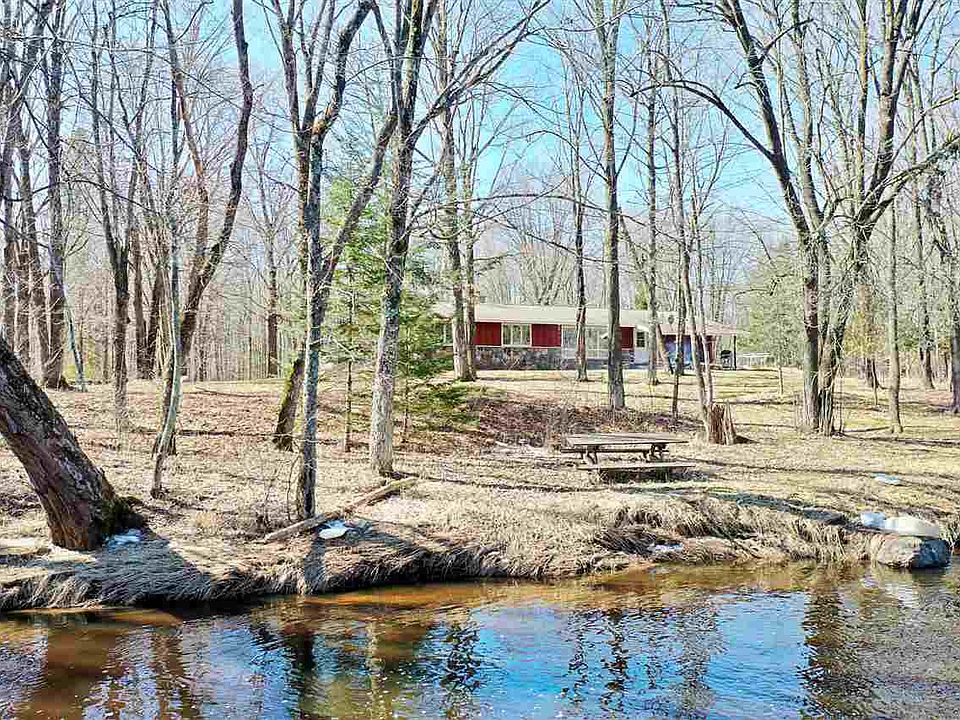 Exceptional 3 bedroom, 1.5 bath riverfront home with over 1,650 feet of frontage on the Black River. Custom oak kitchen with Corian countertops and a pantry. Dining room with river views. Spacious living room with a fieldstone fireplace featuring antique hand hewn timbers. Full updated bathroom with tub and walk-in tile shower. Sunroom with access to a stamped concrete patio. Covered porch overlooking the river. Attached garage and 2 sheds. Secluded setting on +/-17.2 wooded acres with mature maples and abundant wildlife. The refrigerator, stove, dishwasher, washer, dryer, chest freezer, window coverings, hutch and iron filter are included in the sale.
