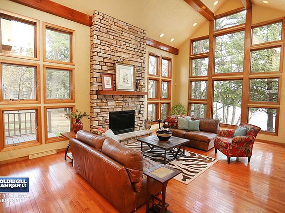 Premier Chain O'Lakes Luxury Home with 67' of Sand Frontage sits high on a Wooded Lot at Point Comfort overlooking panoramic views of Rainbow Lake. First floor Master En-Suite, Gourmet Kitchen, Den/Study, Large Great Rm w/wall of windows and soaring stone FP, Domed Sunroom, Custom Cherry cabinetry and Maple throughout, indoor Golf Range, Boat House, Paver Stone Driveway. The amenities are endless!