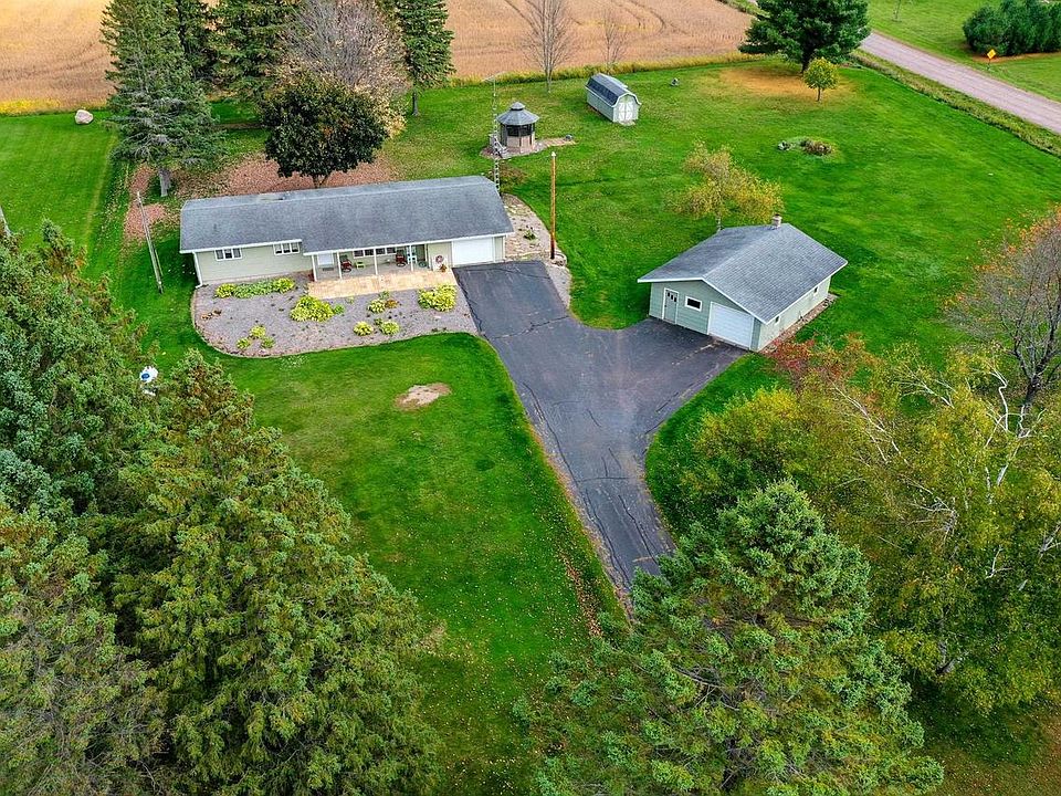 Well maintained 3 bedroom, 1.5 bath country ranch home located just west of Medford on +/-1.58 acres. Updated kitchen with oak cabinets. Dining room open to spacious living room. 3 main floor bedrooms. Full bath with heated tub. Partially finished basement with work area and rec room. Covered front porch with beautiful country views. Rear stamped concrete patio. Large yard with screened in gazebo, yard shed and trees. Attached garage and detached heated garage with workshop. The kitchen refrigerator, stove, washer, dryer, window coverings, water softener, window a/c unit, dehumidifier, pool table and basement refrigerator are included in the sale price.