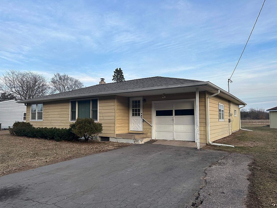 Recently updated ranch-style home situated on the way to the King/Chain area. Boasts 2 bedrooms and 1 bathroom and backs up against a peaceful farm field. The house has been updated with several new features including a brand new roof finished on 11/30/23, septic system installed in 2018, furnace installed in 2020, flooring and paint completed in '23. The kitchen has also been updated with new cabinets and counters in 2019. The house features a 1-car attached garage and a full open basement. Great open feel in the home, move in ready! Workshop located off the back of the garage with access to the backyard and a storage shed to store additional toys..