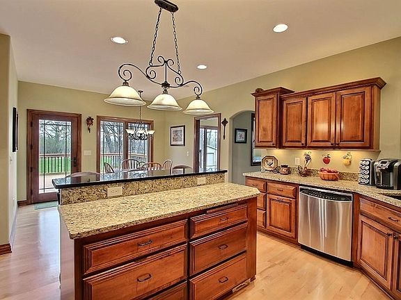 Incredible home with all of the bells and whistles situated on nearly 25 acres with an outbuilding! Home features a beautiful kitchen w/maple cabinetry, granite counters, Stainless Steel appliances, over &under cabinet lighting, & pantry. Inviting sunroom overlooks the deck. Great room has cathedral ceilings & GFP. Luxurious main floor master w/2-sided GFP, tile shower w/body sprays. LL is an entertainers dream with full bath, sauna, full kitchen, wine cellar plus 4th bedroom & office. Huge outbuilding too!