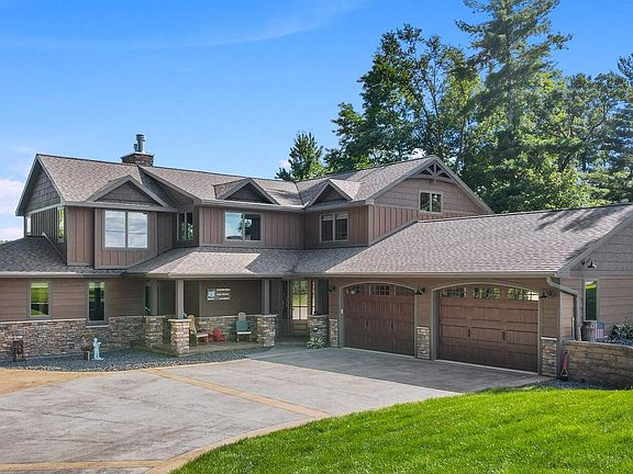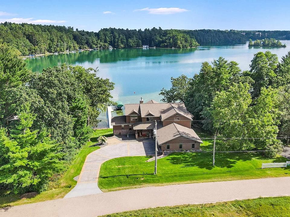 Built in 2019, this stunning home on Sunset Lake offers the best of modern construction and timeless design. Located on the coveted Waupaca Chain O? Lakes, Sunset Lake is a peaceful no-wake lake with direct access to Rainbow Lake?one of just three ski lakes on the chain. Here, luxury, convenience, and waterfront living come together beautifully. The home features 6 bedrooms, 4.5 bathrooms, and a thoughtfully designed floor plan perfect for both everyday living and entertaining. The gourmet kitchen is equipped with a Subzero refrigerator, Wolf double ovens, Wolf gas range with griddle, Cove dishwasher, quartz countertops, and custom Knotty Alder cabinetry. Throughout, Hickory floors bring warmth and character, complemented by Knotty Elder interior doors and custom reclaimed barnwood and iron railings.,Technology and comfort go hand in hand with Lutron Caseta app-controlled lighting, a whole-home indoor/outdoor Sonos speaker system, and zoned heating on the main level. Relax by the gas fireplace on the main floor or the wood-burning fireplace in the lower level, which also features in-floor heat, a theater room with 4K projector and 120? screen, and a full bar with butcher block countertops and Rustic Hickory cabinetry. Outdoor living is just as impressive, with 124 feet (MOL) of frontage, a 28x30 attached garage, stamped concrete driveway, LP Smart Siding, leaf-guard gutters, and an app-controlled underground sprinkler system. Beyond the home, Sunset Lake spans 30 acres with a maximum depth of 63 feet and is prized for its clear waters. Anglers will love the variety of fish, including Musky, Panfish, Largemouth and Smallmouth Bass, Northern Pike, Trout, and Walleye. Whether fishing off the dock, exploring the 22 inter-connected lakes on the Chain, or simply enjoying the view, this property delivers the ultimate year-round lake retreat. This is a rare opportunity to own a home where luxury and lake life meet.