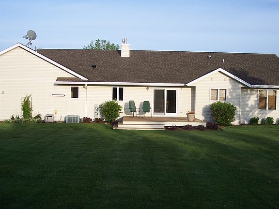 This property is an upscale ranch home built in 1998. It features a large living room with a gas fireplace and oak crown molding. There are three bedrooms, two full baths and one half bath located in the first floor laundry room. The home has oak six panel doors and oak moldings throughout. The home has Anderson casement windows with removable grills and screens. Most windows have custom fitted blinds included. The master bedroom has a walk-in closet and lighted ceiling fan. The master bath has a large linen storage cabinet, a Kohler whirlpool and 4' shower unit. The kitchen has oak cabinetry with an island, a built-in garbage disposal, microwave oven, and dishwasher. The heated garage holds up to 4 cars, 3 comfortable, it is drywalled and equipped with stairwell to the basement from the garage. The garage also has a central vacuum hose to clean the cars, floor drains, hot and cold water supply. The partially exposed basement is half finished off. A carpeted family room with built in office area on one end and a large game room with laminate wood floor and pellet stove. The home mechanicals are all located in the basement. 200 amp electrical service, 50 gallon high efficiency gas hot water heater, 93% efficient furnace, water softener and iron filter, and central vacuum. The driveway and sidewalk is constructed of concrete. A wood deck is attached to the back of the house. A custom built 12x16 barn style storage shed is located on the back corner of the lot. Water is supplied by your own private well, sewer is connected to the Hingham Sanitary District, This home is in excellent condition. It is located in a great small town community. The neighborhood is a pleasant mix of young families to retired couples.